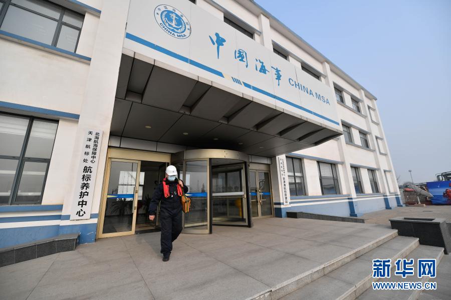 李紅旗攜帶檢修裝備,準備登船前往大沽燈塔(1月20日攝)。新華社發(fā)(孫凡越 攝)