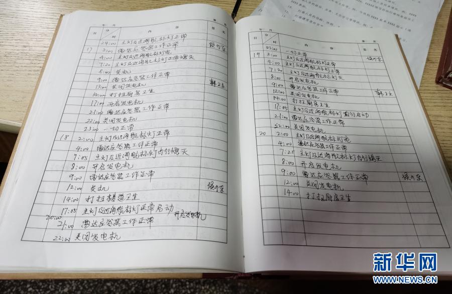 “17:05,主燈及近海航標燈正常啟動”“2:00,主燈及近海航標燈正?!薄?:20,主燈及近海航標燈熄滅”……翻開守塔人的工作日志,這些枯燥而又動人的簡短記錄映入眼簾。保障燈器正常工作是守塔人最重要的職責(zé),到了晚間,他們就輪流值守,不眠不休地守護著來往船舶。