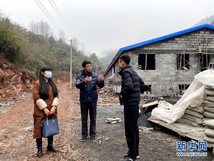 1月27日,駐麻溪口村幫扶工作隊隊長段吉廣(中)在村內(nèi)協(xié)調(diào)生豬養(yǎng)殖場建設(shè)工作。新華社記者 柳王敏 攝