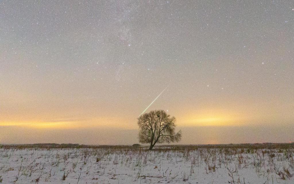 12月14日凌晨在黑龙江省富锦市拍摄的双子座流星雨。新华社发(曲玉宝摄)