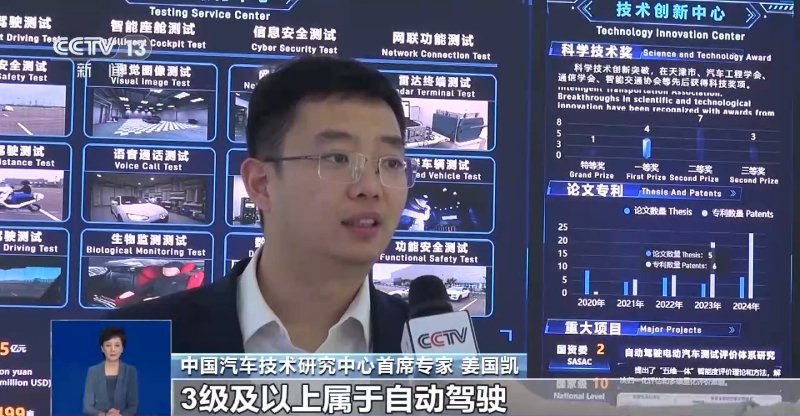 中国汽车技术研究中心首席专家 姜国凯:驾驶自动化分级中,3级是关键分水岭。0—2级是辅助驾驶,3级及以上属于自动驾驶。现在市面销售的车辆,最高属于2级也就是组合驾驶辅助系统。驾驶人员在驾驶车辆的时候,当辅助驾驶功能打开以后,还需要始终保持开车的注意力,双手不能离开方向盘。