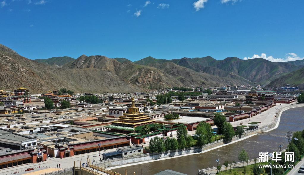 這是7月12日拍攝的拉卜楞寺建筑群(無(wú)人機(jī)照片)。新華社記者 杜哲宇 攝