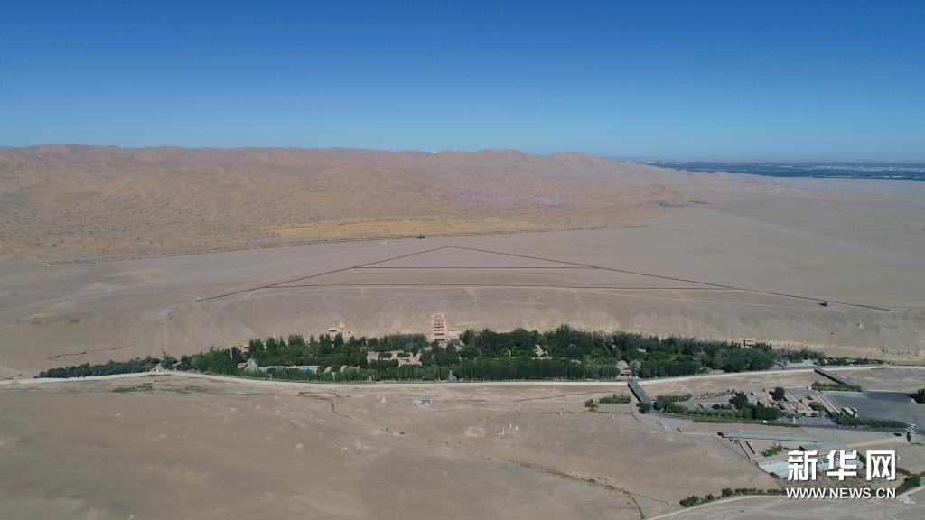 這是敦煌莫高窟全景(7月6日攝,無人機(jī)照片)。新華社記者 劉詩平 攝