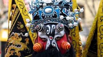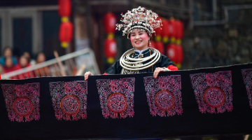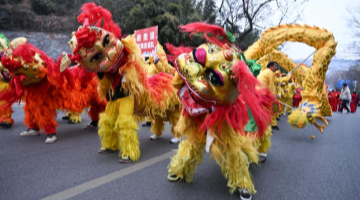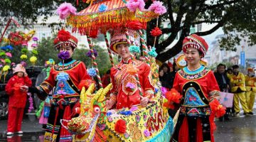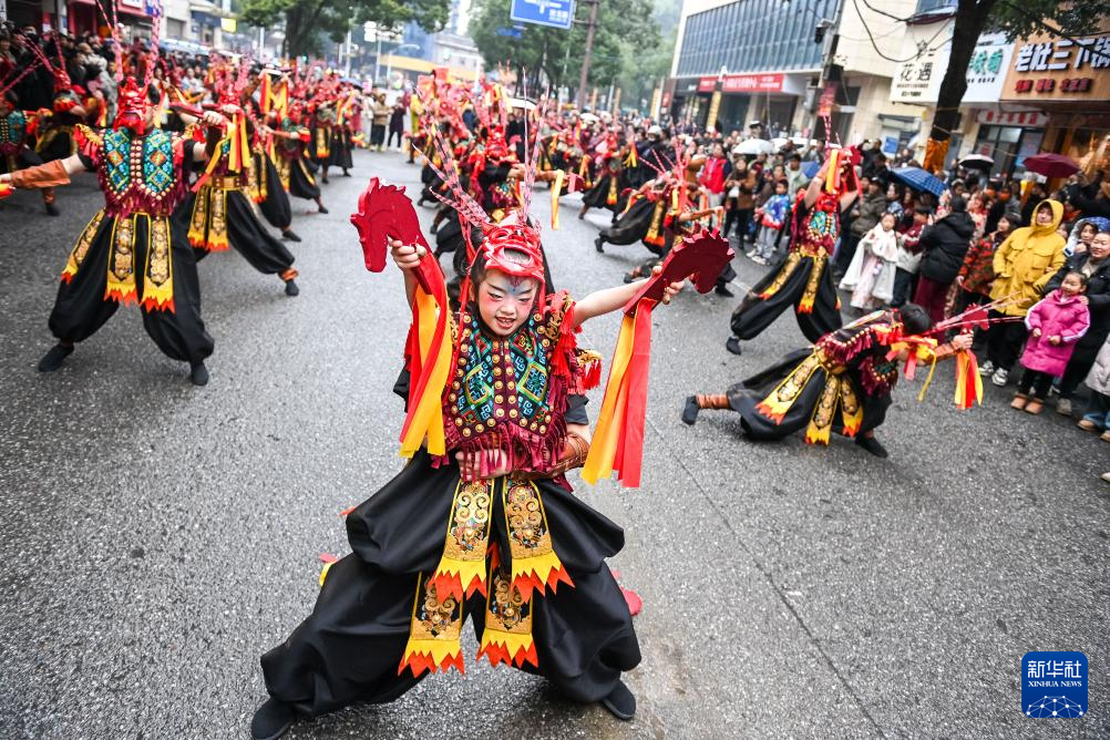 2月12日,在张家界市永定区,当地民间文艺队演员在表演民俗节目。