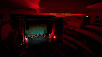 2月12日,市民和游客在张家界市永定区观看巡游演出(无人机照片)。