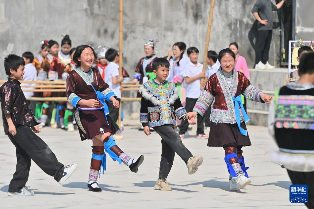 当日,广西柳州市融水苗族自治县杆洞乡中心小学举行石榴籽连籽·共庆“三月三”乡村少年宫民族风情文化展演活动,各族少年通过芦笙踩堂舞、山歌对唱、刺绣等丰富多彩的民俗文化活动,喜迎“三月三”传统节日。