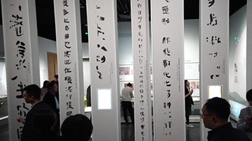 4月27日,学生在埃及开罗举行的“国际中文日”活动上观看中国书法创作。