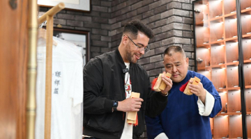 5月12日,游客在改扩建后的西安碑林博物馆北区场馆进行互动体验。
