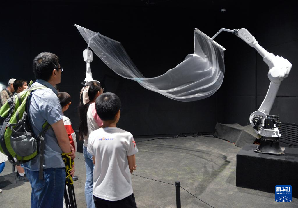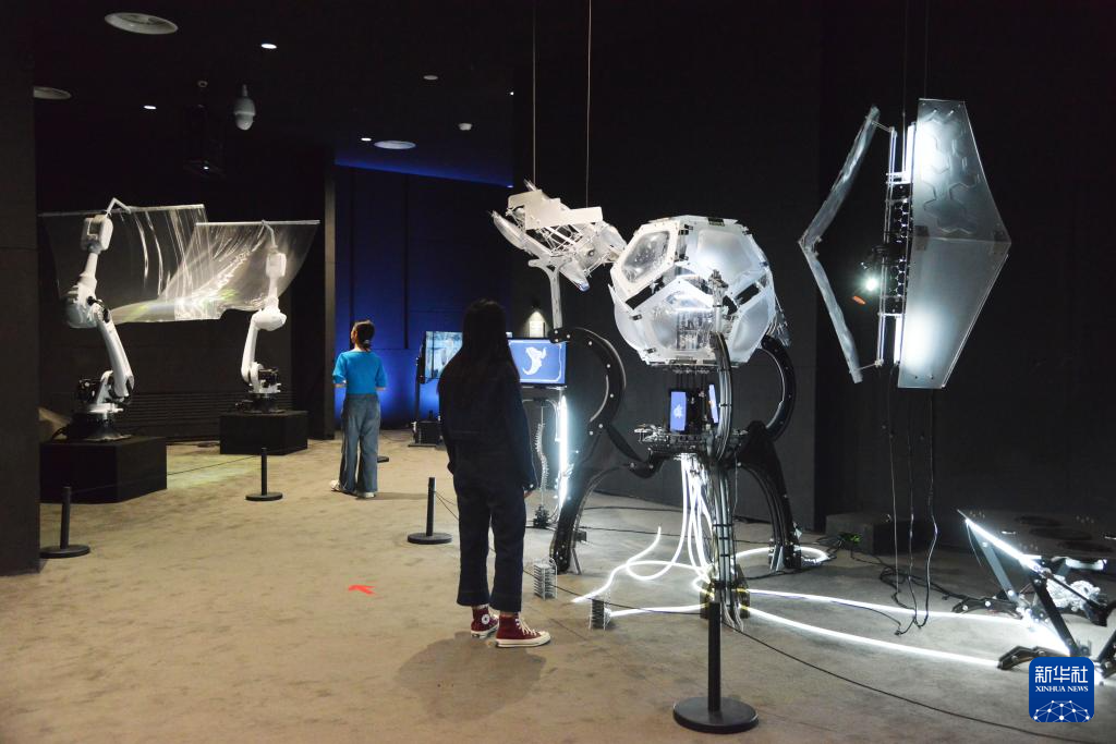6月21日,观众在北京市海淀区三山五园文化艺术中心参观2025亚洲数字艺术展。