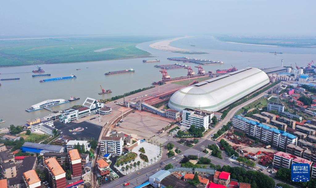 2025年5月19日拍摄的城陵矶港(无人机照片)。新华社发(徐典波 摄)