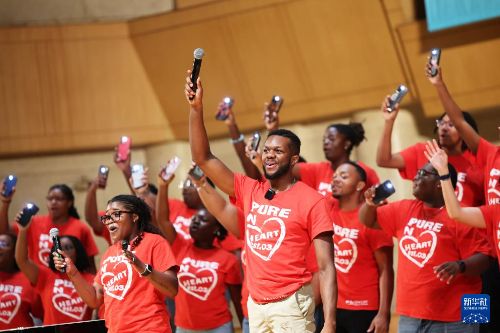 7月14日,在中国交响乐团,犹他谷大学合唱团在演唱。