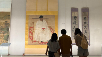 7月16日,76岁的湘巴藏戏国家级非遗传承人次仁多吉(右二)在南木林县非遗公园内给即将表演湘巴藏戏的小演员整理服装。