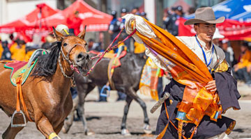 9月7日,在意大利威尼斯,人们参加赛船节的船队游行。