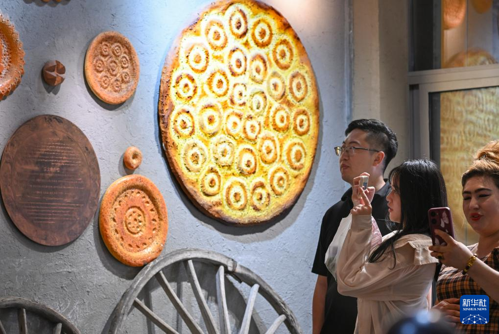 9月9日,游客在位于乌鲁木齐的大巴扎馕主题馆参观游览。