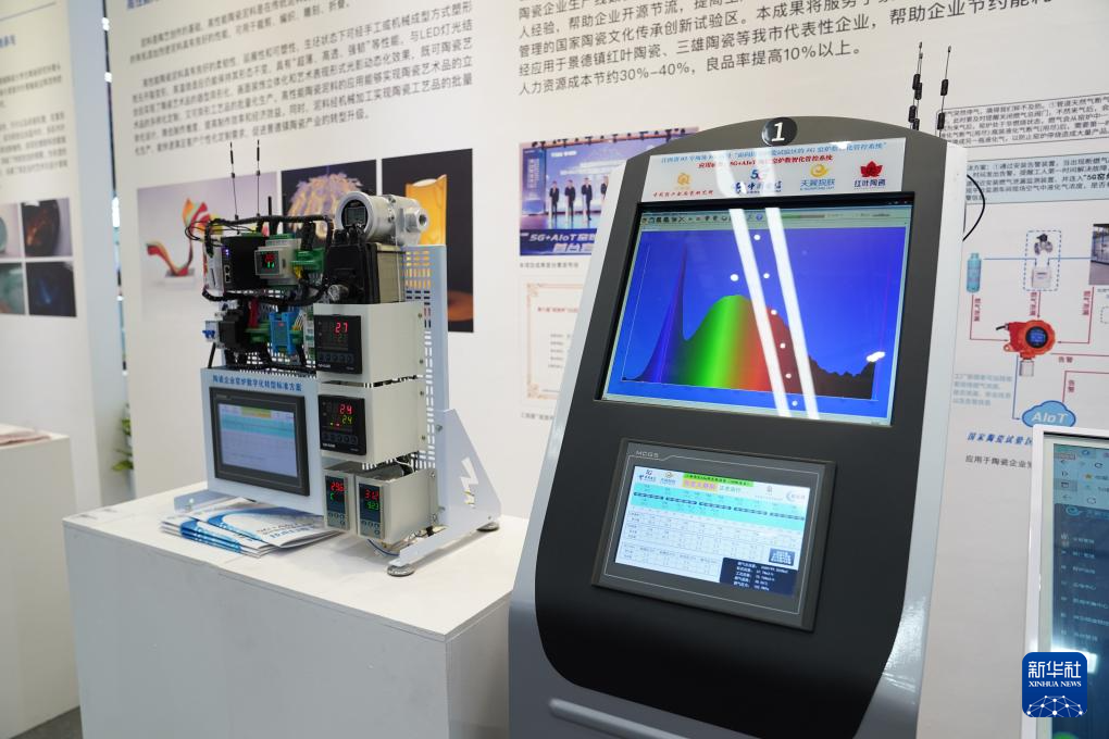 这是陶瓷博览会展区展出的5G陶瓷窑炉管控系统(10月18日摄)。