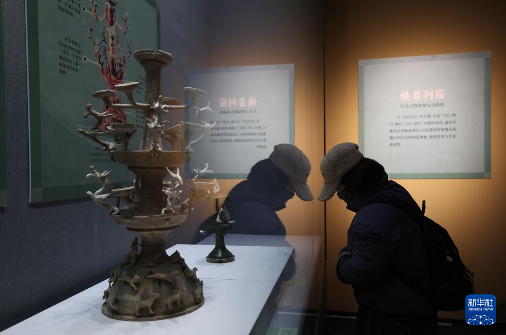 12月25日,参观者在河北博物院参观“光耀千年——中国古代灯具文化展”。