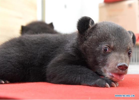 A black bear cub plays at Hefei Wildlife Zoo in Hefei, capital of east China's Anhui Province, April 11, 2017. (Xinhua/Guo Chen)