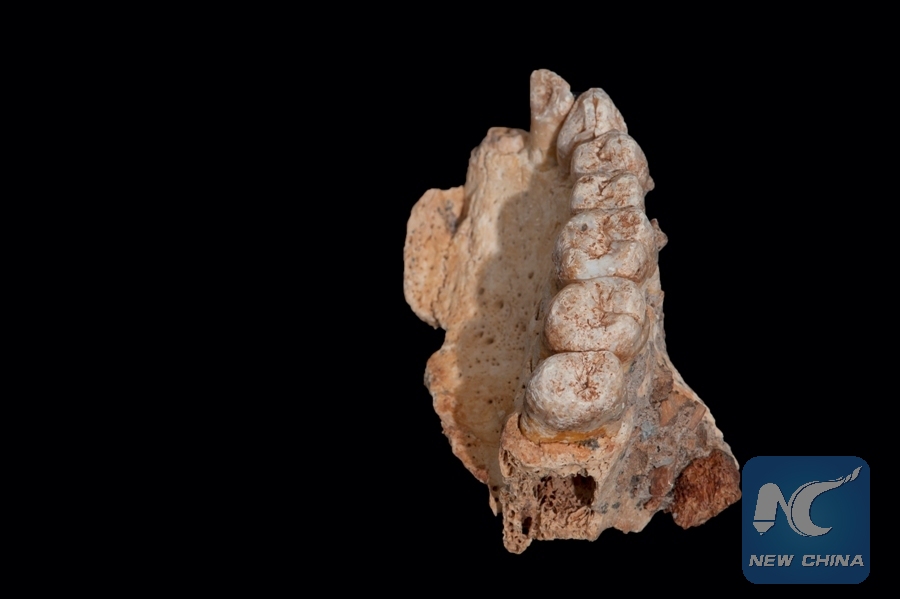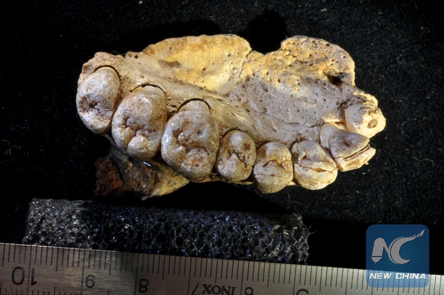 This is the left hemi-maxilla with teeth. (Xinhua/CREDIT: Rolf Quam)