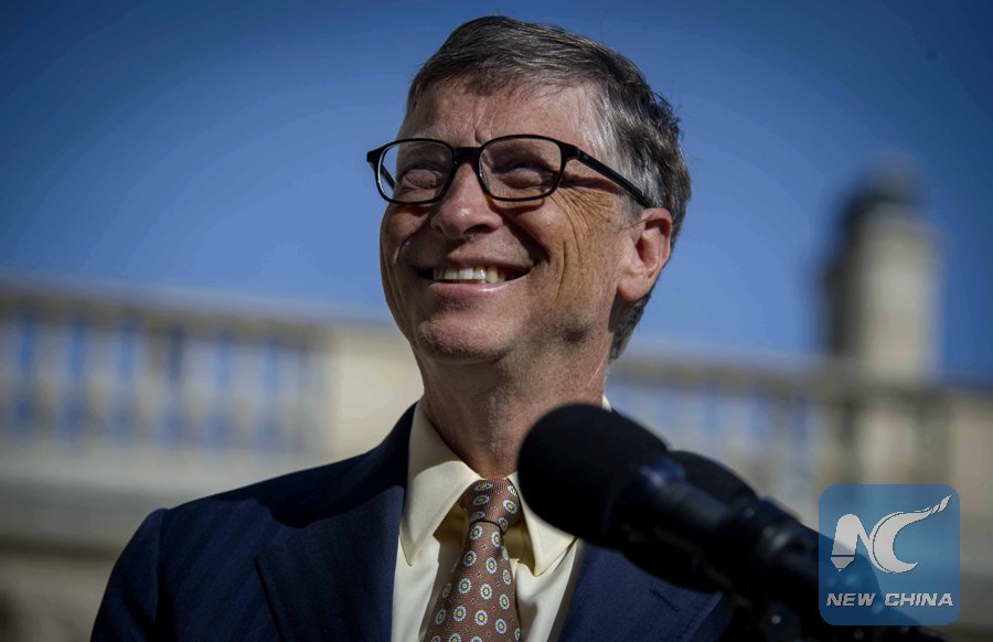 File Photo: Microsoft founder Bill Gates, co-chair of the Bill & Melinda Gates Foundation, speaks to reporters after meeting with French President Francois Hollande at the Elysee Palace in Paris, France, on June 25, 2015. (Xinhua/Chen Xiaowei)