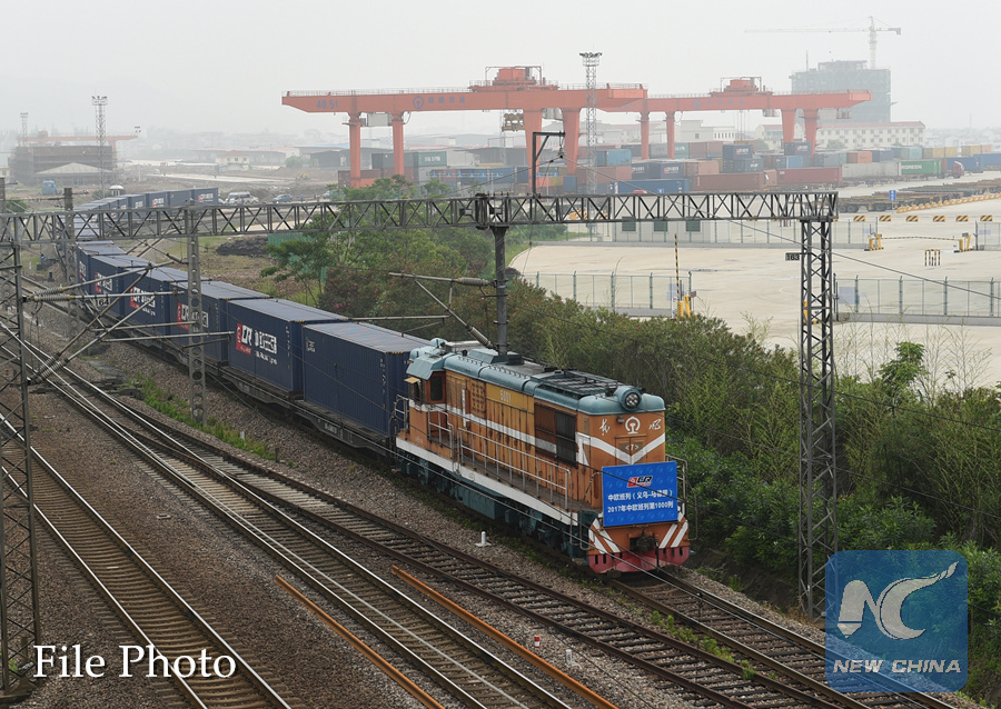 The 1,000th freight train linking China and Europe this year departs from the Yiwu West Railway Station in Yiwu, east China's Zhejiang Province, May 13, 2017. (Xinhua/Gong Xianming)