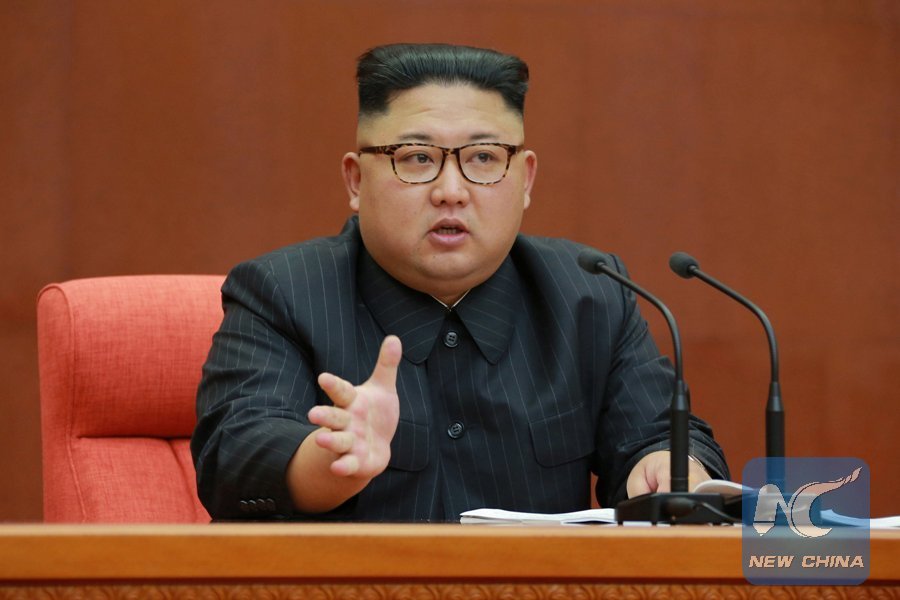 Kim Jong Un, top leader of the Democratic People's Republic of Korea (DPRK), speaks during the Second Plenum of the 7th Central Committee of the Workers' Party of Korea in Pyongyang, capital of the DPRK, Oct. 7, 2017. (Xinhua/KCNA)