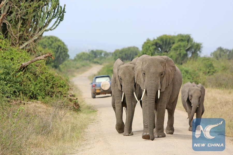 Elephants walk at Queen Elizabeth National Park in the western Ugandan district of Kasese, January 31, 2017. (Xinhua/Ronald Ssekandi)