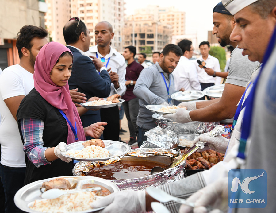 CAIRO, May 28 (Xinhua) -- Dozens of Chinese companies on Sunday sent hundreds of food boxes to the needy people and held a charity iftar table in Cairo's Maadi district, sharing the joy of Egyptians during the holy month of Ramadan.