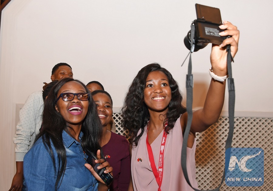 South African recipients of the Chinese government scholarships take a selfie during a send-off event in Pretoria, South Africa, Aug. 16, 2018. (Xinhua/Chen Cheng)