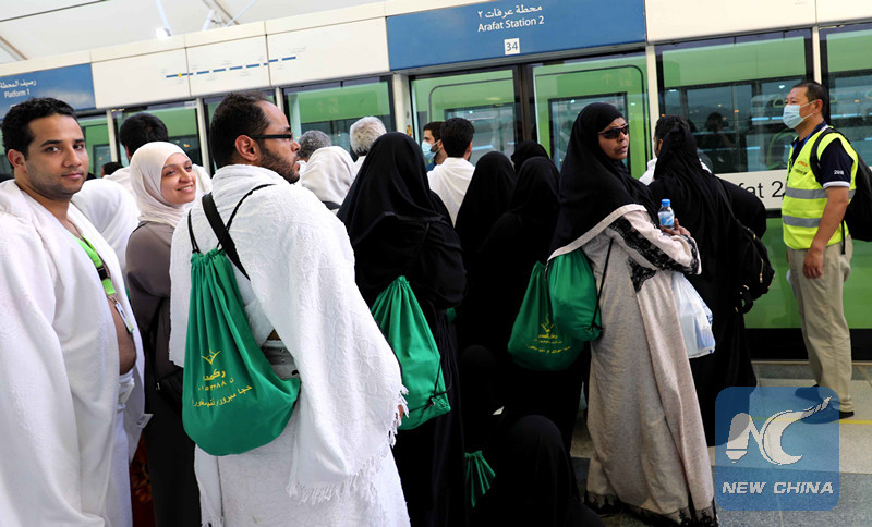 Pilgrims are taking light rails constructed and operated by CRCC to travel to Hajj destinations in Mecca, Saudi Arabia on Aug. 20, 2018. (Xinhua)