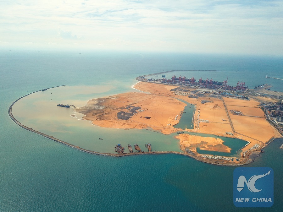 Photo taken on April 19, 2018 shows the construction site of Colombo Port City in Colombo, SriLanka. (Xinhua/CHEC)