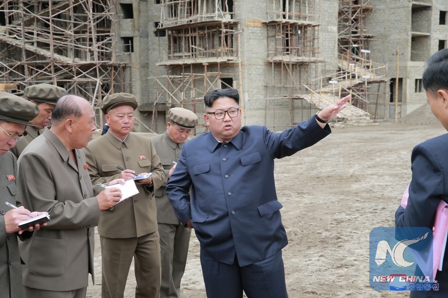 File photo provided by Korean Central News Agency (KCNA) on July 10, 2018 shows Kim Jong Un (C), top leader of the Democratic People's Republic of Korea (DPRK), inspecting a construction site at Samjiyon County of DPRK's northern Mount Paektu region. (Xinhua/KCNA)