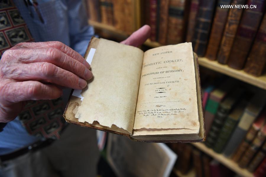 A book published on 1808 is displayed by the owner at the Washington Antiquarian Book Fair in Arlington County, Virginia, the United States, on Sept. 28, 2018. Washington Antiquarian Book Fair is a festival of rare and collectible books, manuscripts, autographs, maps and drawings. (Xinhua/Liu Jie)