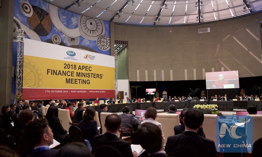 Participants attend the Asia-Pacific Economic Cooperation (APEC) Finance Ministers Meeting held in Port Moresby, Papua New Guinea, Oct. 17, 2018. (Xinhua/Hao Yalin)