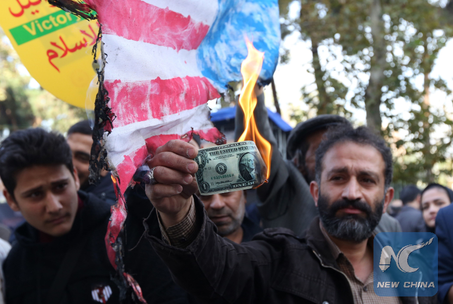 TEHRAN, Nov. 4 (Xinhua) -- Thousands of Iranians held rallies in Tehran on Sunday to mark the 39th anniversary of the seizure of the former U.S. Embassy in the capital city.