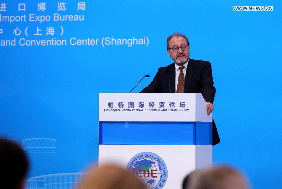 Mats Karlsson, Swedish senior researcher, speaks at the Parallel Session on Trade and Opening of the Hongqiao International Economic and Trade Forum in Shanghai, east China, Nov. 5, 2018. (Xinhua/Chen Fei)