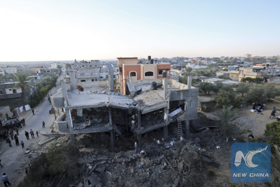 JERUSALEM, Nov. 13 (Xinhua) -- The barrage of rockets from the Gaza Strip continued targeting southern Israel on Tuesday, killing a man, while Israeli airstrikes killed four in Gaza amid one of the worst flare-ups since 2014.