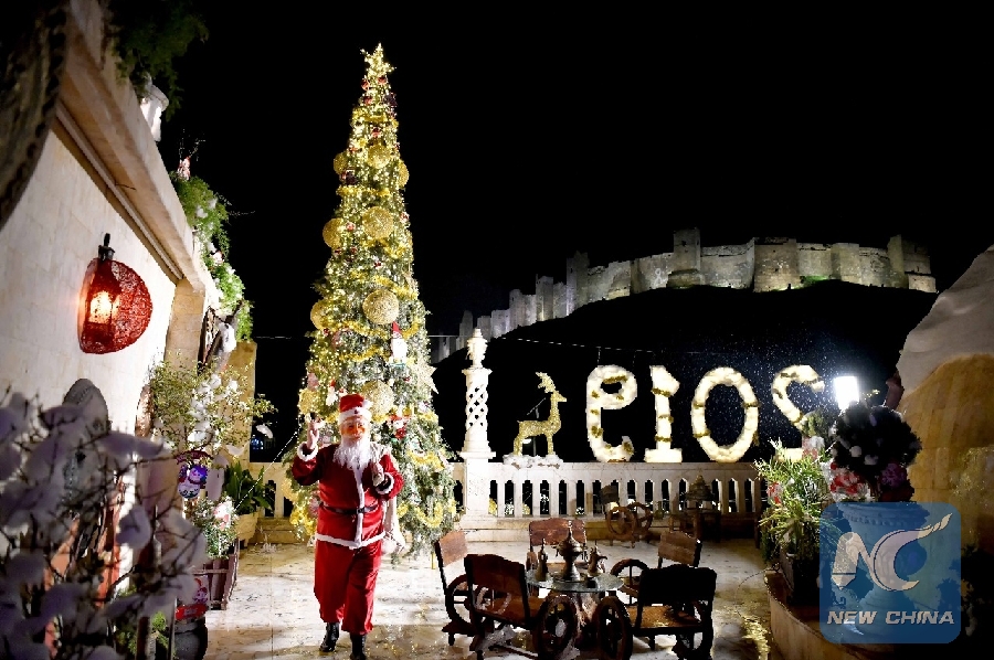 Kheirallah told Xinhua that he had brought assorted decorations and festooned a large Christmas tree with colorful lights to be a minaret of hope and love amid the largely destroyed part of Aleppo.