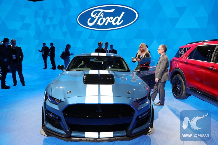 Photo taken on Jan. 14, 2019 shows a Ford Shelby GT500 at the 2019 North American International Auto Show (NAIAS) in Detroit, the United States. (Xinhua/Wang Ping)
