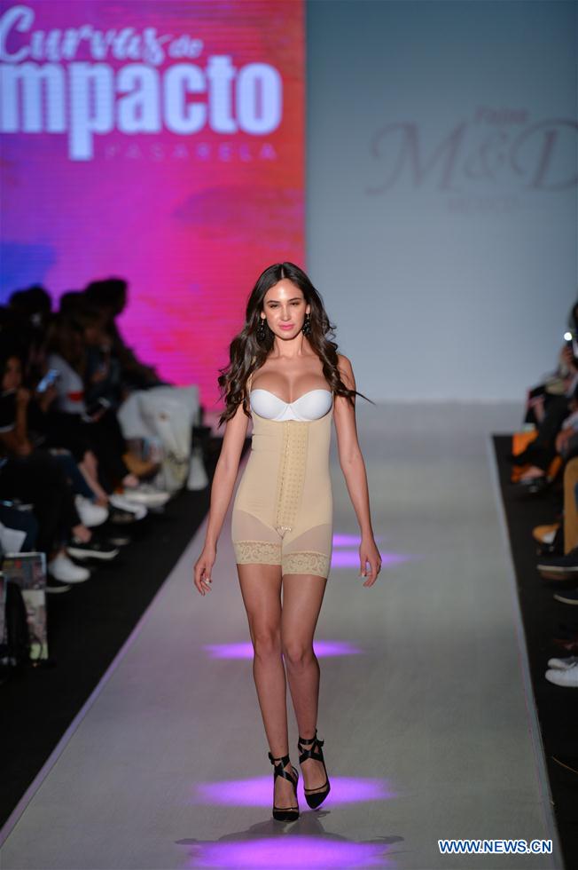 A model presents a creation of Fajas M&D during the Intermoda 2019 Fashion Show in Guadalajara, Mexico, on Jan. 17, 2019. (Xinhua/Xin Yuewei)