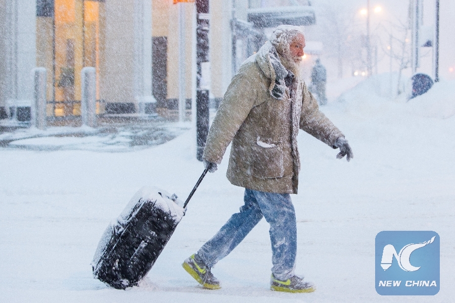 A man moves his luggage in snow during a winter storm in Buffalo, New York, the United States, Jan. 30, 2019. (REUTERS Photo)