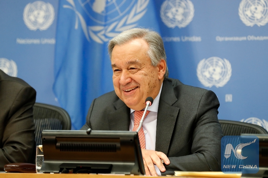 File Photo: UN Secretary-General Antonio Guterres addresses a press conference at the UN headquarters in New York, on Jan. 18, 2019. (Xinhua/Li Muzi)