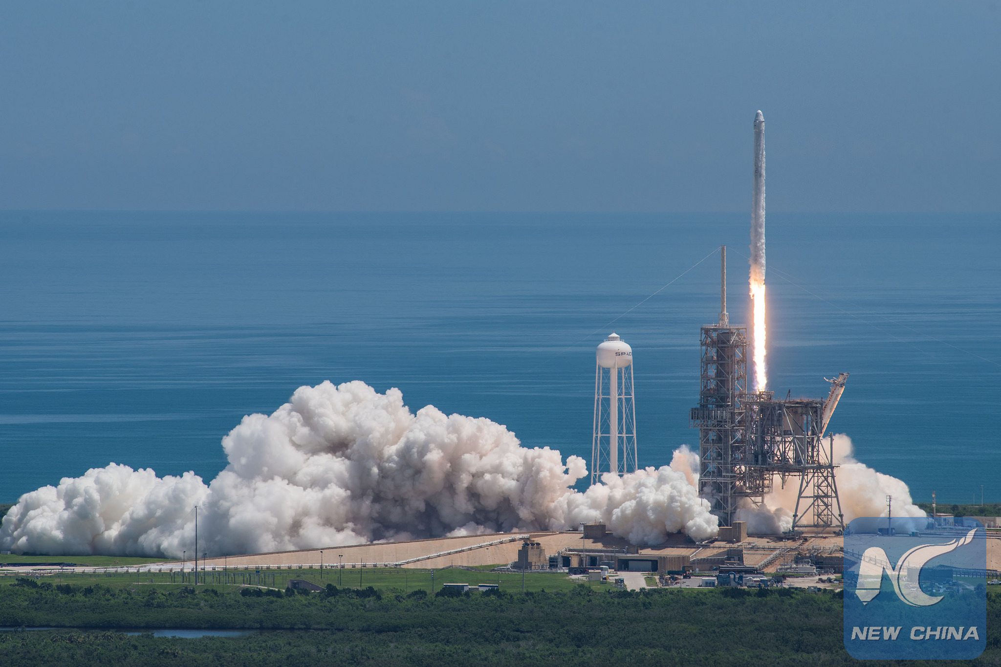 The photo released by SpaceX on Aug. 14, 2017 shows Falcon 9 rocket being launching at NASA's Kennedy Space Center in Florida, the United States. (Xinhua)