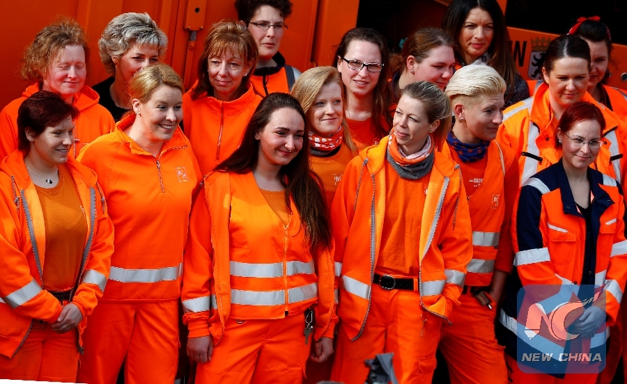 German Federal Family Minister Franziska Giffey poses with female staff members of the BSR municipal service in the run-up to the International Women's Day and active participation after a waste disposal tour in Berlin, Germany, March 7, 2019. (REUTERS Photo)