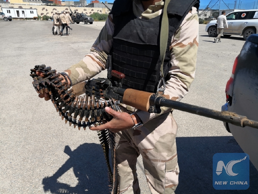 File Photo: A government soldier prepares his weapon in southern Tripoli, Libya, April 8, 2019. The Libyan government has launched a military campaign against the eastern-based army of Khalifa Haftar that attacked the capital Tripoli, said a spokesman. (Xinhua)