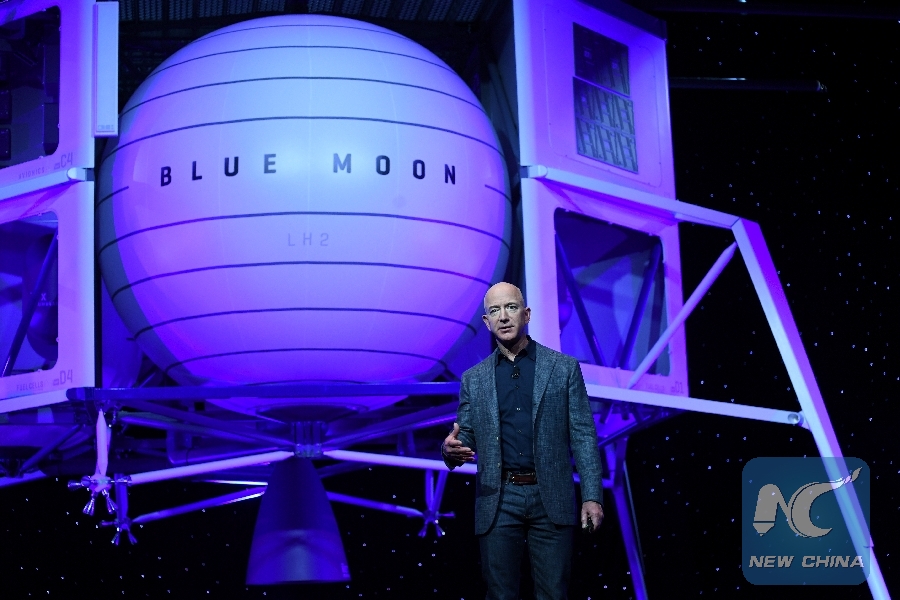 WASHINGTON, May 9 (Xinhua) -- Jeff Bezos, founder of U.S. aerospace manufacturer Blue Origin and chairman of Amazon, unveiled on Thursday a lunar lander that may land on the Moon by 2024.