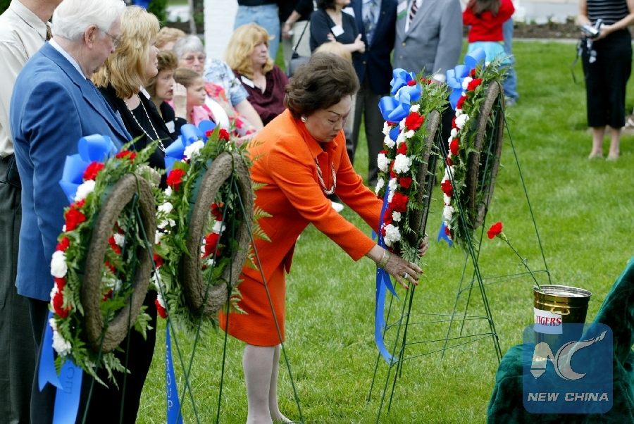 The file photo taken on May 28, 2005 shows Anna Chan Chennault (C), mother of Cynthia Chennault, attending a memorial ceremony to commemorate fallen soldiers in Arlington National Cemetery, in Virginia, the United States. (Xinhua/Lyu Mingxiang)