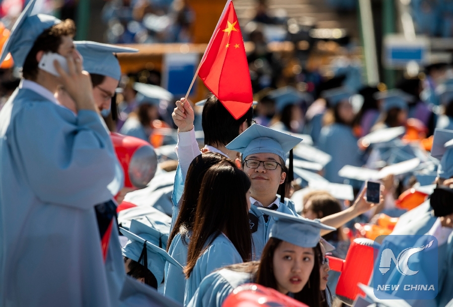 File Photo: Graduate students from China attend the Columbia University Commencement ceremony in New York, the United States, May 22, 2019. (Xinhua/Wang Ying)