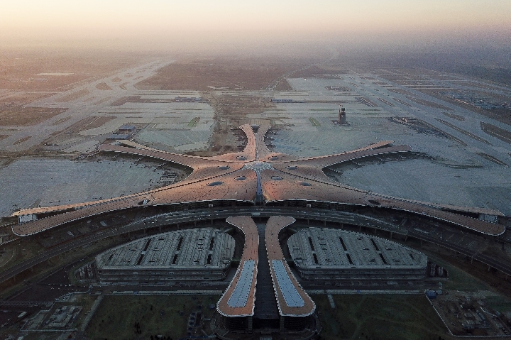 Located 46 km south of downtown Beijing, the new airport is aimed at taking pressure off the overcrowded Beijing Capital International Airport in the northeastern suburbs. It sits at the junction of Beijing's Daxing District and Langfang, a city of neighboring Hebei Province. It is expected to handle 45 million passengers annually by 2021 and 72 million by 2025.
