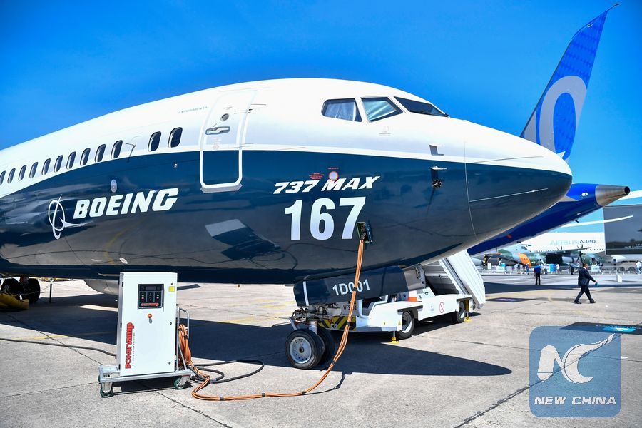 File photo taken on June 19, 2017 shows a Boeing 737 MAX 9 at the 52nd International Paris Air and Space Show in Bourget, France. The United States is grounding all Boeing 737 Max 8 and 9 aircraft, said U.S. President Donald Trump on March 13, 2019. (Xinhua/Chen Yichen)