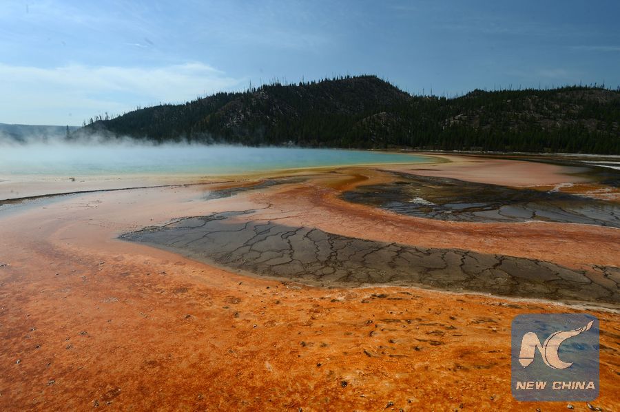 Photo taken on Aug. 19, 2013 shows the scenery of Grand Prismatic Spring in Yellowstone National Park, the United States. Established in 1872, Yellowstone was the first national park in the world and is known for its wildlife and many geothermal features. (Xinhua/Wang Lei)
